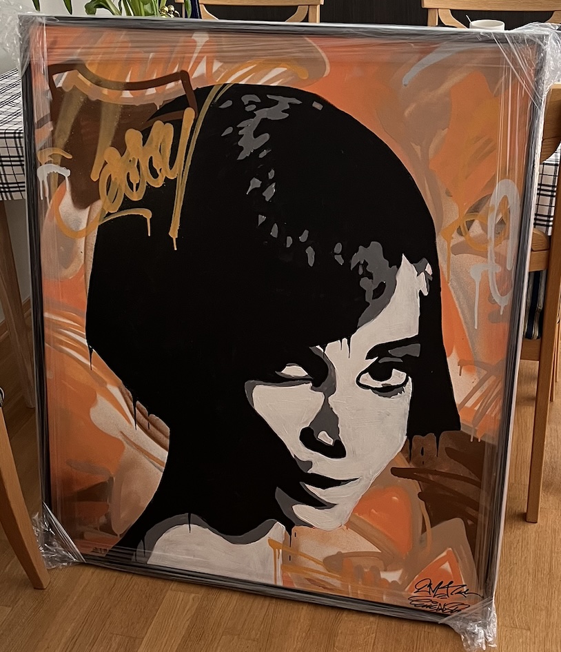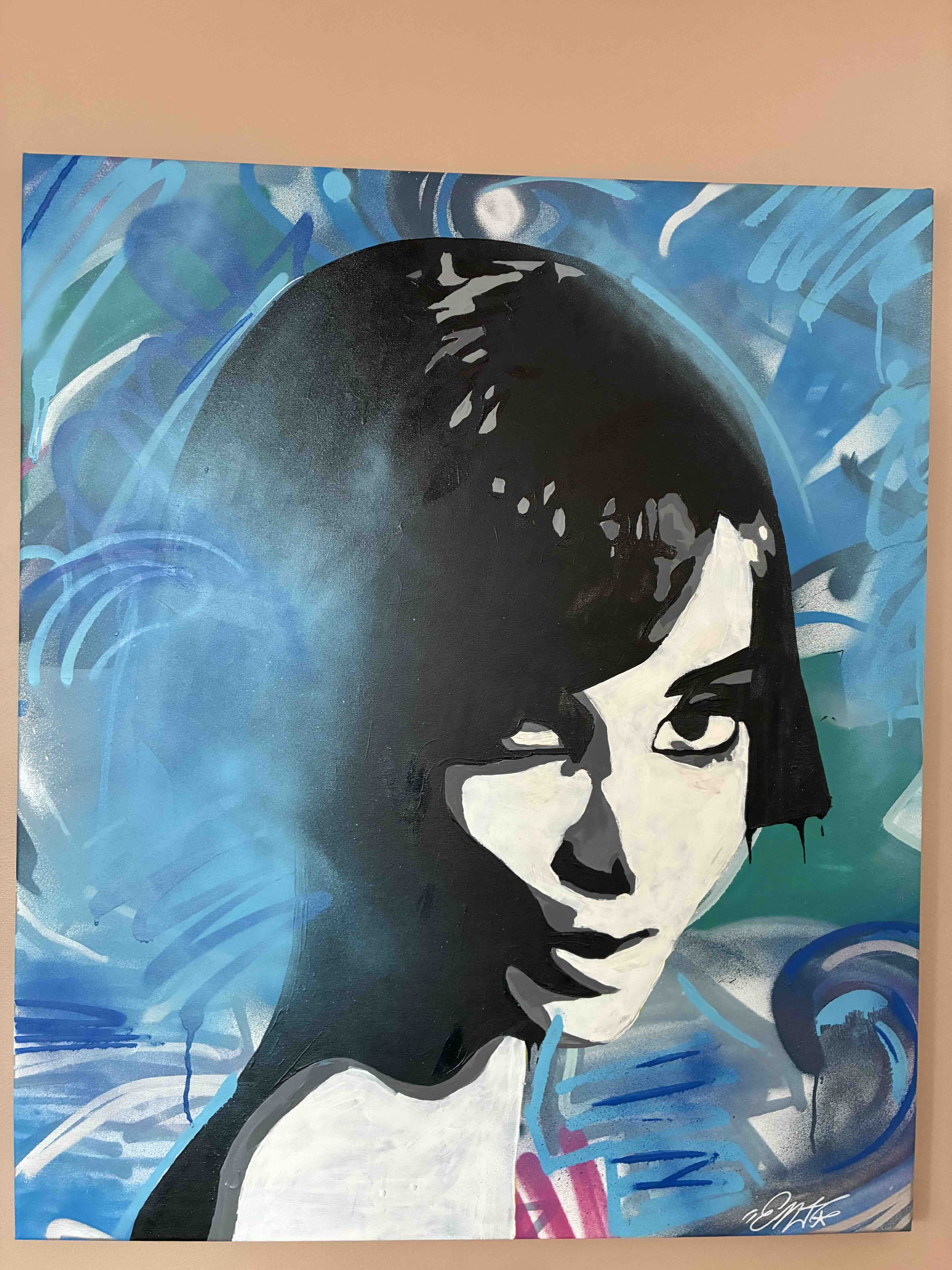 Audrey Hepburn på blindramme og lerret, 100x85 cm.