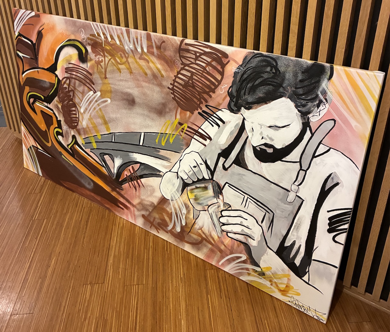 Bilde henger på Jobbhuset, Drammen, 200x100 cm.